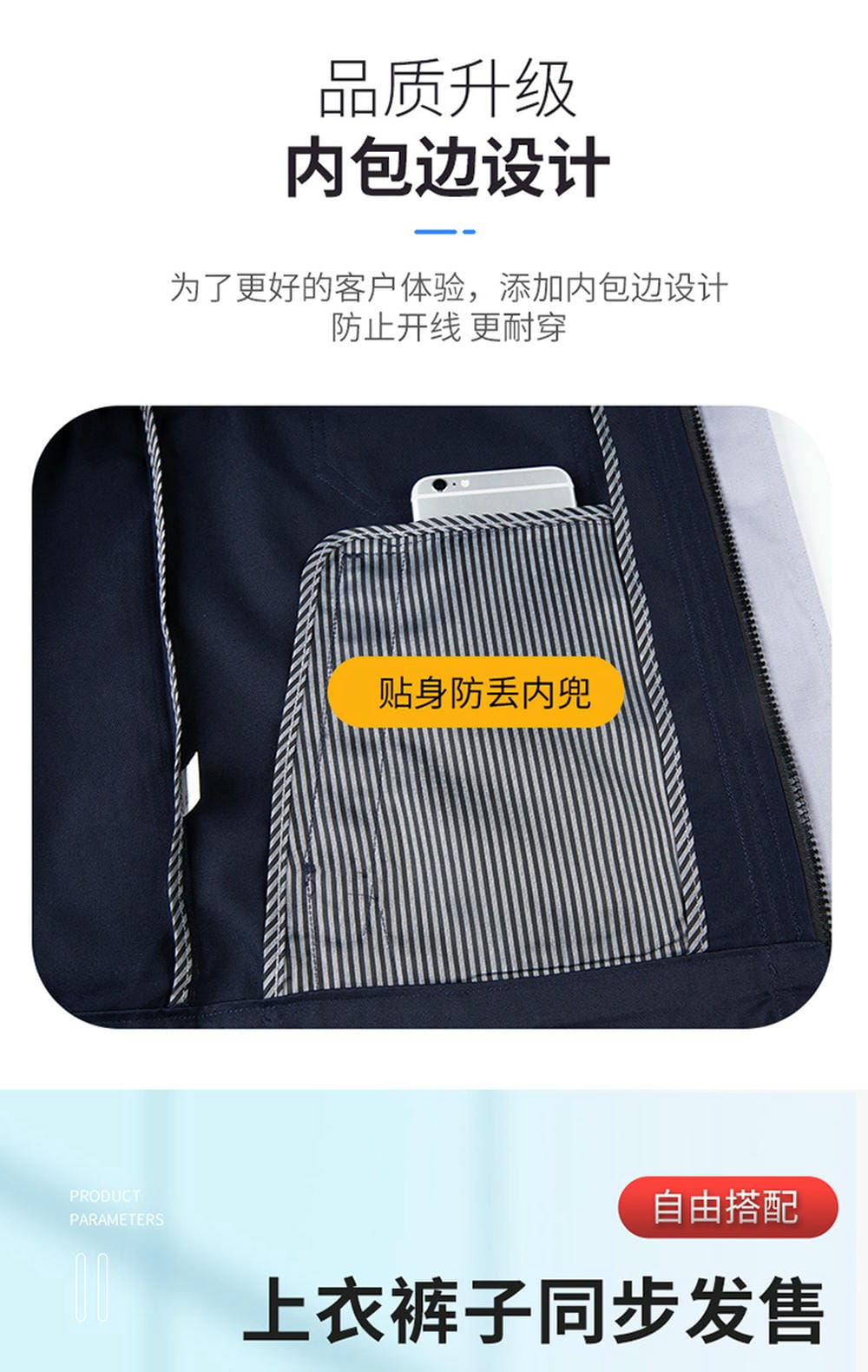 尺品可定制針對電子、化工等需要防靜電的工作環境,尺品推出防靜電工作服。采用特殊面料,有效防止靜電產生,保護員工和設備安全。設計合理,穿著方便,適合長時間作業。